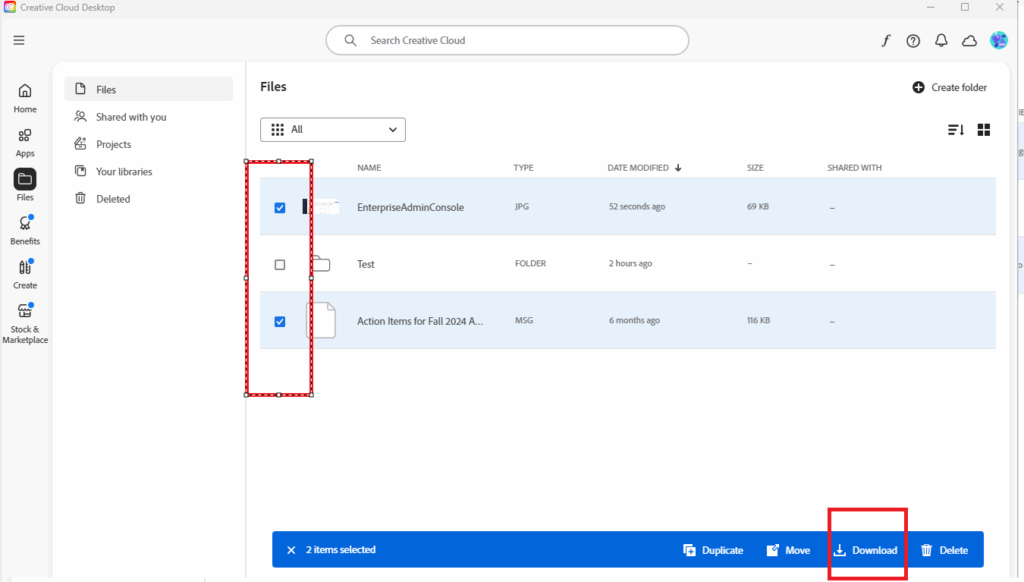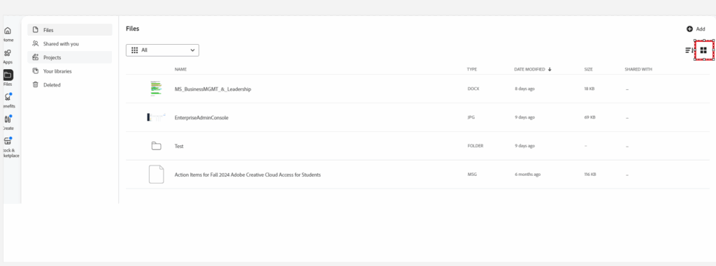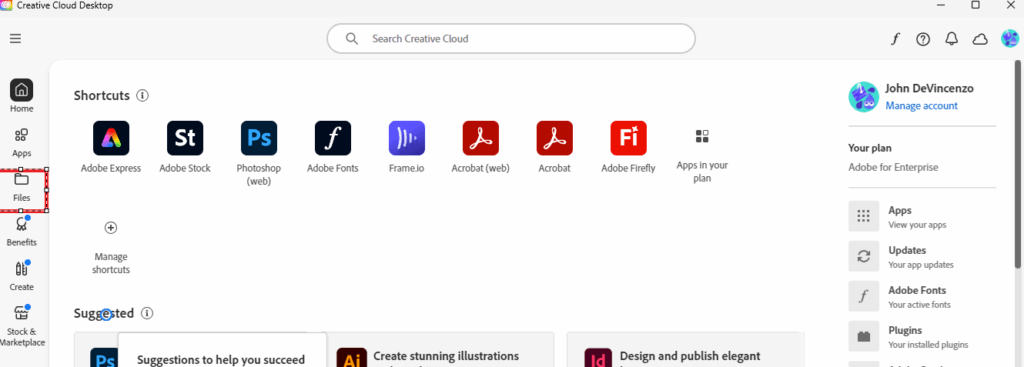 - Load Creative Cloud Desktop application and click Files on the left side navigation bar.