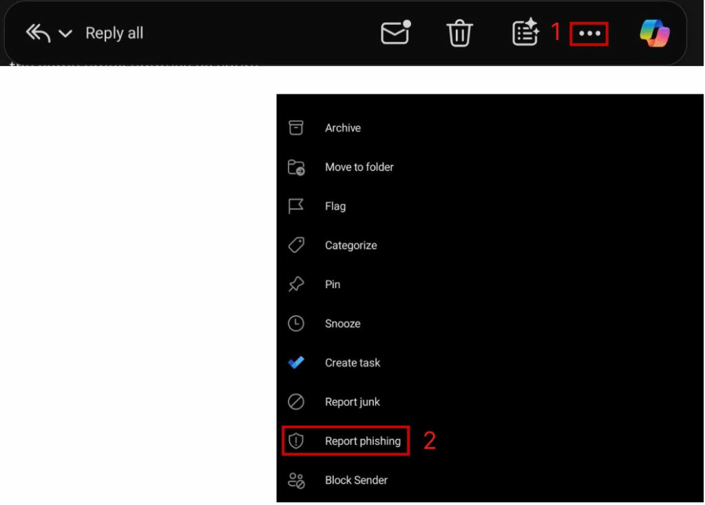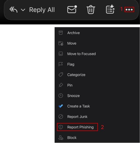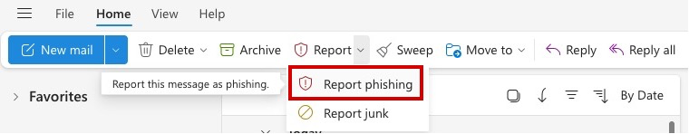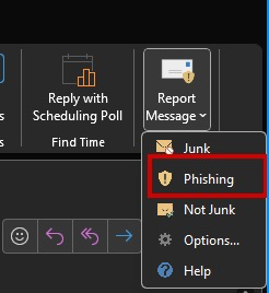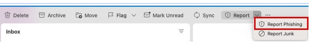 If you receive an email that appears to be a phishing or junk email, reporting it from your Outlook app helps Microsoft and CUNY protect the college from malicious emails.